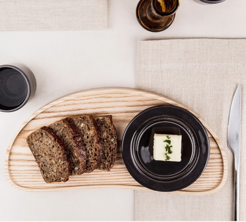 Inspired by nature and naturals materials, this ash wood tray makes for perfect dessert, cheese or coffee service, or as an organic catchall for your desk. Pair with the smaller sized Bean Tray for additional service or nestling. Can safely be wiped and washed by hand with warm water; not dishwasher safe. Rub with oils from time to time to keep luster and prolong life. Ash wood finished with mix of natural waxes and oils; color and grain may vary. 12 1/2" x 6" x 3/4"
