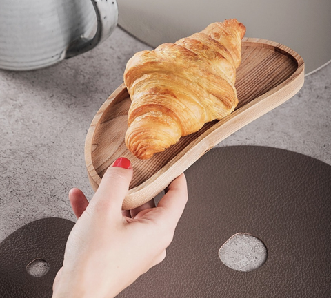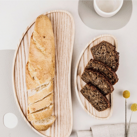 Inspired by nature and naturals materials, this ash wood tray makes for perfect dessert, breakfast or snack service, or as an organic catchall for your desk. Pair with the larger Bean Tray for additional service or nestling. Can safely be wiped and washed by hand with warm water; not dishwasher safe. Rub with oils from time to time to keep luster and prolong life. Ash wood finished with mix of natural waxes and oils; color and grain may vary. 9 1/4" x 4" x 3/4"