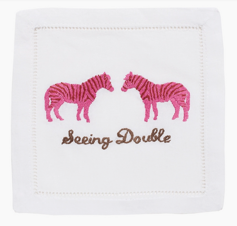 Classically irreverent cocktail napkins makes you the life of the party or the person with the very best hostess gifts! Set of four, fun embroidered cocktail napkins from August Morgan. One each of: "buzzed", "drinking bunny", "owl have another" and "seeing double".