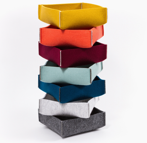 This square, heather-gray felt bowl is the perfect catch-all for holding random things around the home or office. Merino wool felt is a natural sturdy fiber known for its antibacterial properties. Toss anywhere a bit more organization is needed. Spot clean with damp cloth or rinse under water with mild soap; lay flat to dry. Clip any stray fibers with scissors. 7" x 7" x 2"