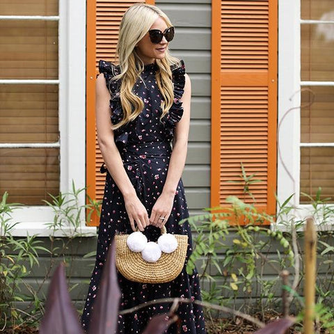 The mini beach basket from JADEtribe is a smaller version of our most popular beach bag. Handcrafted from hyacinth and adorned with three white pom poms. Inset round handles mirror the playful curvature of this structured bag. Multi-colored, hand-loomed cotton lining keeps valuables free of sand. 10" x 7" x 3"