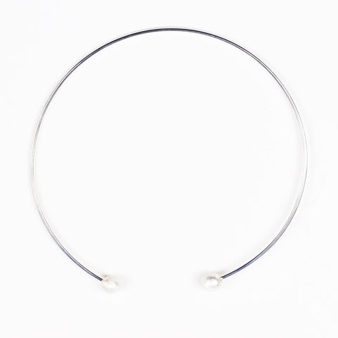 Article 22's chic Bead Choker, made of sterling silver and Peacebomb metal. The flexible, sterling silver wire choker is finished with stone-polished Peacebomb orbs. The purchase of this choker clears 8 square meters of bomb littered land. Choker measures 5" in diameter; beads 1/4" diameter.